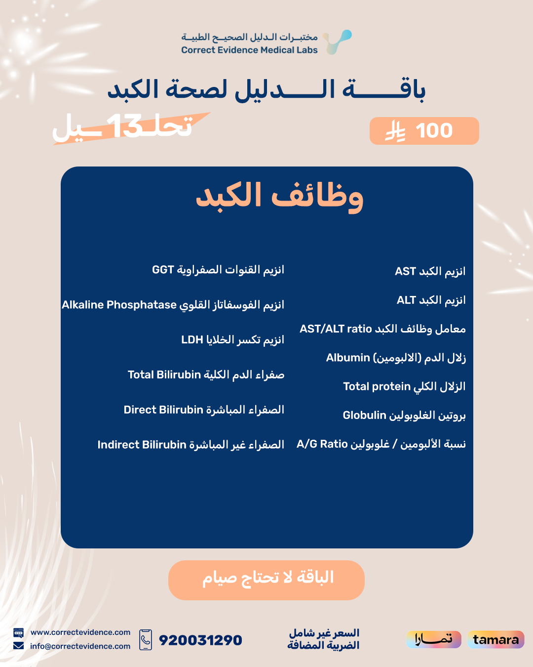 افحص كبدك اليوم، احجز باقة الدليل لصحة الكبد وتمتع بتقييم شامل ودقيق لوظائف الكبد. صحتك تبدأ من هنا.