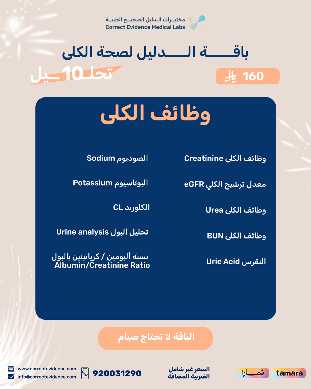اطمئن على صحة كليتيك الآن، احجز باقة الدليل لصحة الكلى وتمتع بنتائج دقيقة تساعدك على حماية صحتك.