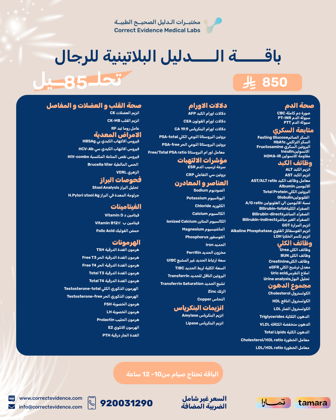 مناسبة للرجال من جميع الأعمار وبسعر منافس مقارنة بقيمة التحاليل.