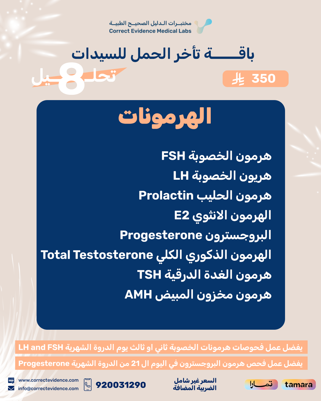 تغطية جميع الهرمونات المهمة لتقييم حالة المبيض والغدة الدرقية ومستوى التستوستيرون.
